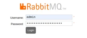 Verify that the RabbitMQ web admin console displays and enter the RabbitMQ administrative user credentials you set earlier to log in.
