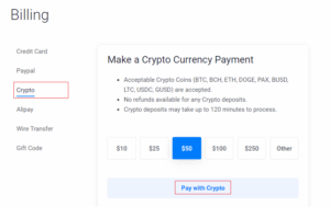 - Select Crypto, choose an amount, or click Other to enter a custom amount.