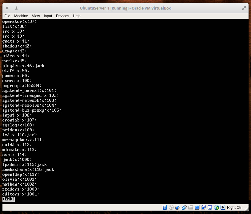 That’s it. If you issue the command less /etc/group, you’ll see our newly created groups listed (Figure 1).