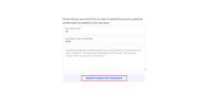 6.Specify the new account limits and click Request Custom Limit Adjustment.