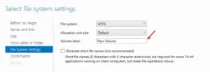 15.Select the partition file system, enter a custom name in the Volume label field to identify the Vultr Block Storage volume partition, and click Next.