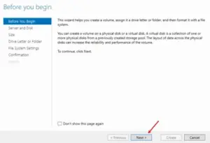 10.Click Next in the New Volume Wizard.