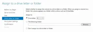 14.Click the Drive letter drop-down to select a letter to assign the Vultr Block Storage volume partition and click Next.
