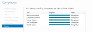 17.Monitor the partitioning process, verify that all tasks are completed, and click Close.