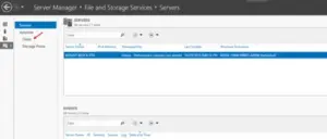 2.Open the Windows Server Manager application and click File and Storage Services on the left navigation menu.