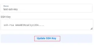 3.Enter the SSH Key details and click Update SSH Key.