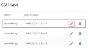 2.Select the SSH key from the list and click the Edit SSH Key icon.
