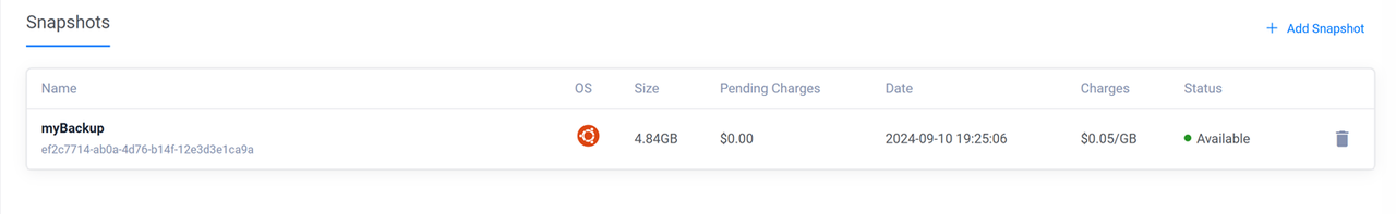 - Monitor the snapshot’s progress and verify the status changes from Pending to Available.