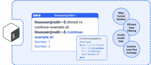 Learn the continue command in Bash to control loop iterations, skip conditions, and optimize script logic efficiently.