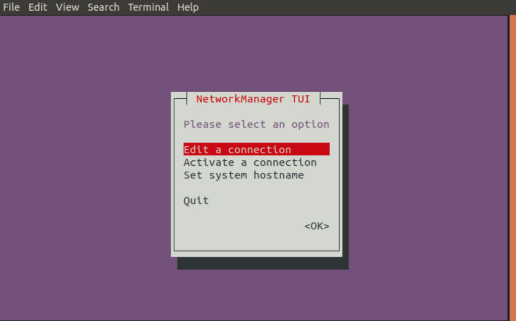 Changing settings in the graphical environment is very likely to be interacting with the Network Manager, and you can also change Network Manager settings from the command line using the tool called nmtui. The nmtui tool provides all the settings that you find in the graphical environment but gives it in a text-based semi-graphical interface that works on the command line (Figure 2).