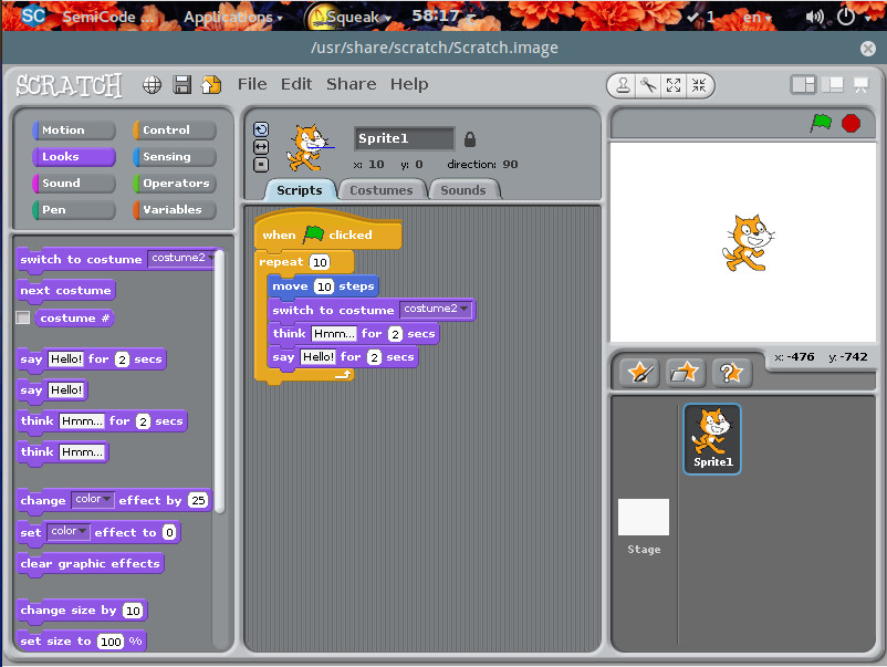 Not a coder, but want to learn? That’s why SemiCode OS ships with the Scratch application. Scratch is a fun way to help people, new to programming, learn the craft. It is geared more toward younger users, but anyone can take advantage of the simple to use, drag and drop interface (Figure 2).