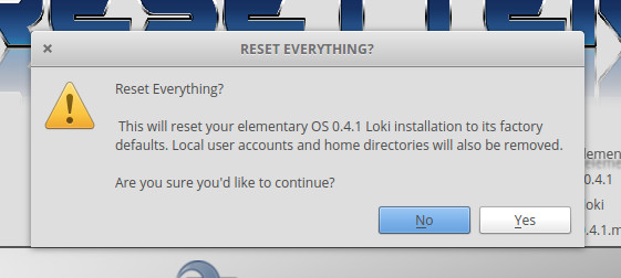 We’re going to test the Resetter waters by running an automatic reset. From the main window, click Automatic Reset. The app will offer up a clear warning that it is about to reset your operating system (in my case, Elementary OS 0.4.1 Loki) to its factory defaults (Figure 3).
