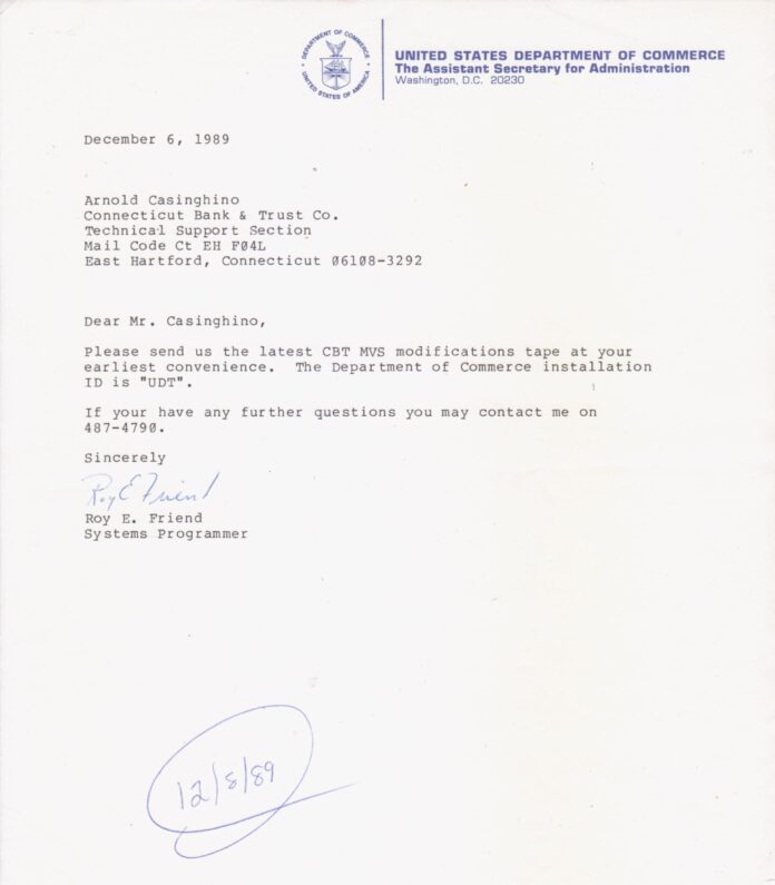 Arnold “Arnie” Casinghino was one of the first to recognize the need to collaborate. In 1975, he began to curate scripts and tools into the CBT Tape project (CBT standing for the name of Arnie’s then-employer, the now-defunct Connecticut Bank and Trust Company). Interested users at that time would send Arnie a letter with a few dollars to request a tape, a method of distribution that carries on to today even though most users download the latest release from their website.