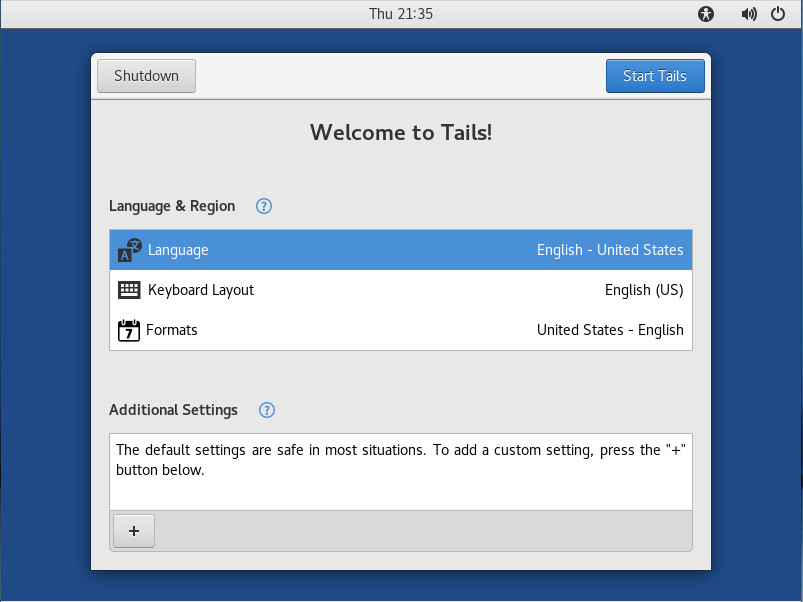 Tails 3 brings about some significant changes to the platform. First and foremost, there’s a brand new startup and shutdown experience. When you boot Tails 3, the first thing you will see is the Tails Greeter (Figure 1). In this screen, you can select your Language, Keyboard Layout, and Date/Time formats.