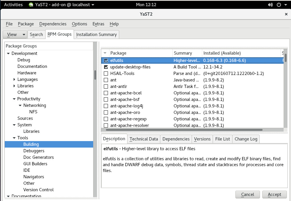 Figure 2: Installing package groups in openSUSE Tumbleweed.