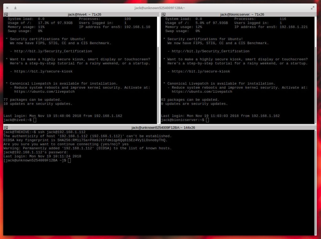 The caveat to using Terminator is that it is not a standard SSH GUI tool, in that it won’t save your sessions or give you quick access to those servers. In other words, you will always have to manually log into your remote Linux servers. However, being able to see your remote Secure Shell sessions side by side does make administering multiple remote machines quite a bit easier.