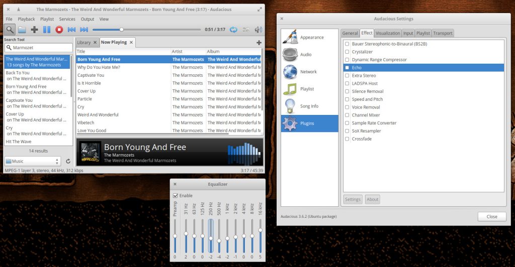 Figure 4: The Audacious EQ and plugins.