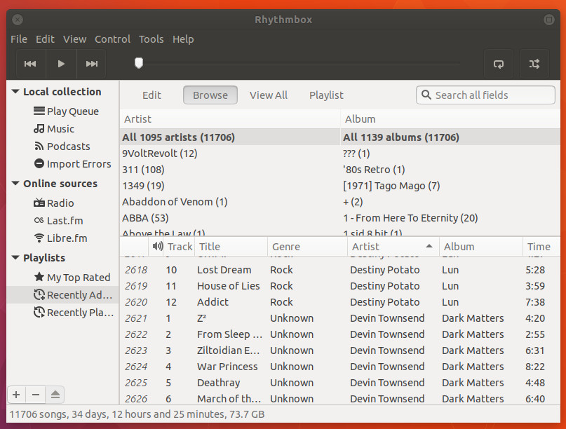 Figure 2: The Rhythmbox interface is simple and straightforward.