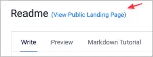- Click the View Public Landing Page link in the Readme section to preview your application’s landing page.