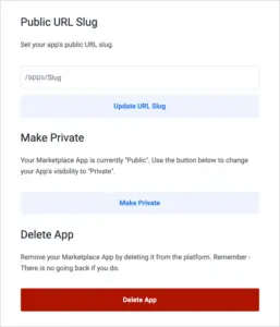 The Public URL Slug is the final part of your application’s landing page URL. If your application’s slug is my-fantastic-app