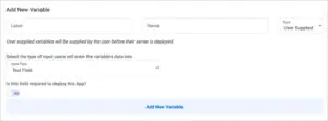When a customer deploys your Marketplace application, you can request information and capture those values as variables. These variables can be displayed in the application instructions and are available to your application through the Vultr Metadata API. Using application variables allows you to tailor each deployment with user-supplied information, such as a domain name or a preferred username.