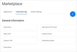 Click the Create New App tab to create a Marketplace app, then fill in the data fields to describe your app.
