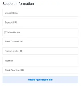 2.Enter the contact information and click Update App Support Info. All information is optional.